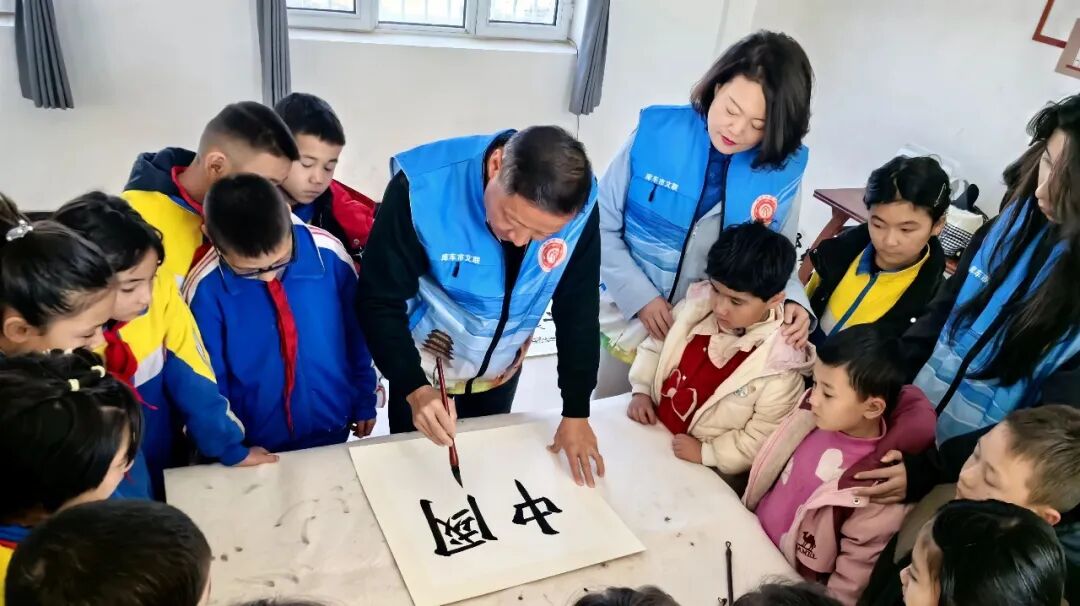 活動中還為綠園村30名學生代表捐贈了圖書、書包、棉帽、書法作品以及文創產品,這些承載著溫度的禮物為孩子們在寒意漸濃的時節送來了溫暖和祝福,打開了知識的大門。