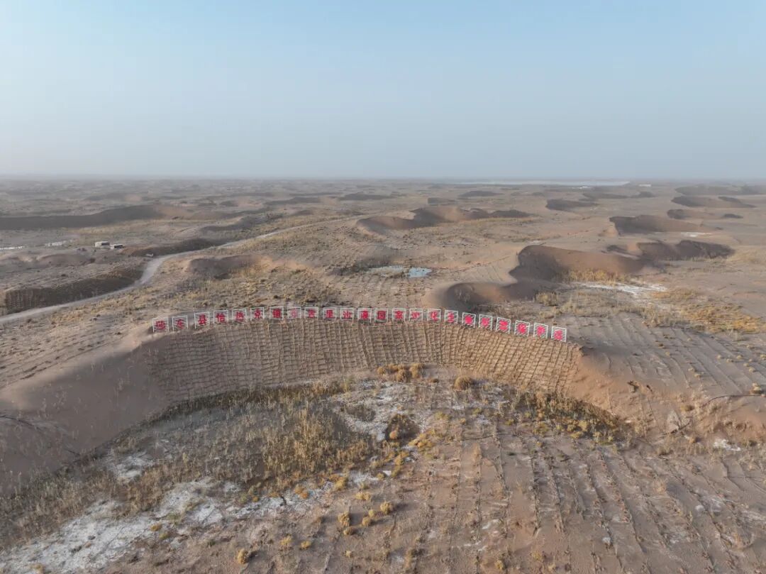 麥蓋提縣防沙治沙見成效,沙海之上綠水青山就是金山銀山的愿景照進現實。麥蓋提縣防沙治沙中心供圖