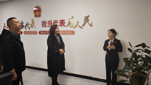 在奎屯市人民法院,調研組實地參觀法院人大代表聯絡站、訴訟服務中心、家事調解室、院史館,了解人大代表聯絡站運行及代表委員履職情況。奎屯法院通過1名院領導包聯3名駐站人大代表的形式,整合人大代表群眾工作優勢和法官專業優勢,探索“代表說理+法官釋法”的解紛模式,讓基層矛盾化解既有力度更有溫度。